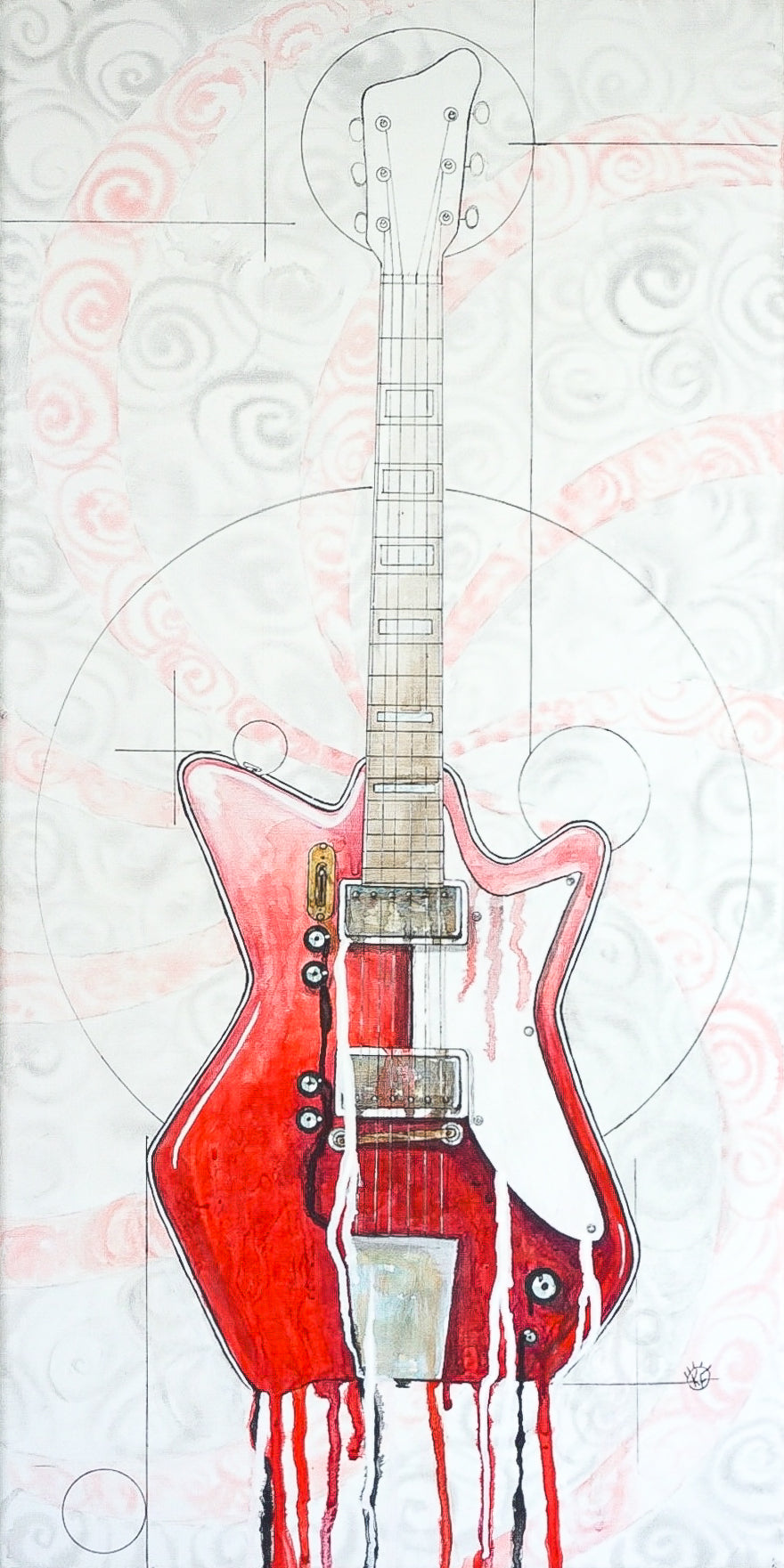 This is a piece from my It Sounds Like Collection. A part of a group of 3 guitars painted in tribute to my favorite musician and modern rock legend Jack White.
